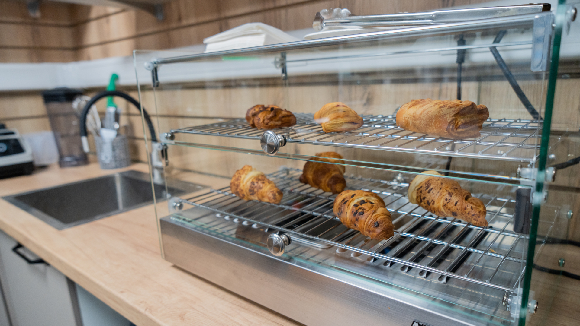 Свежая и горячая выпечка, согревающий чай и безалкогольный глинтвейн, фирменное мягкое мороженое и нежные молочные коктейли.